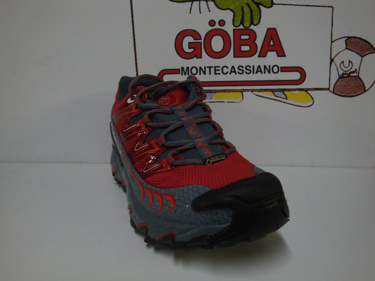 Calzatura in membrana Gore-Tex sviluppata per utilizzi invernali su percorsi off-road di lunga distanza, competizioni ultra-marathon e sessioni di allenamento prolungate. La tomaia e' in mesh anti abrasione traspirante e water repellent, la fodera ? in membrana Gore-Tex Extended Comfort a garanzia di impermeabilit? e traspirabilit?. Il sistema di allacciatura ? integrato alla tomaia a mezzo di fettucce cucite sul tessuto elastico interno e con rinforzi in alta frequenza sul mesh esterno: questo permette di ripartire la tensione dell?allacciatura su tutta la tomaia ed avvolgere meglio il piede per un perfetto comfort di calzata. Ultra Raptor GTX unisce i vantaggi in termini di performance di una costruzione contenitiva a quelli di comfort derivati da una forma comoda e con pianta larga. Il risultato ? un prodotto indossabile per molte ore consecutive ed adatto per utilizzo endurance su qualsiasi tipo di terreno off-road nei mesi invernali o in situazioni di elevata umidita', grazie alle doti di impermeabilit? della fodera Gore-Tex. Suola ad alta aderenza realizzata in mescola La Sportiva FriXion XF.